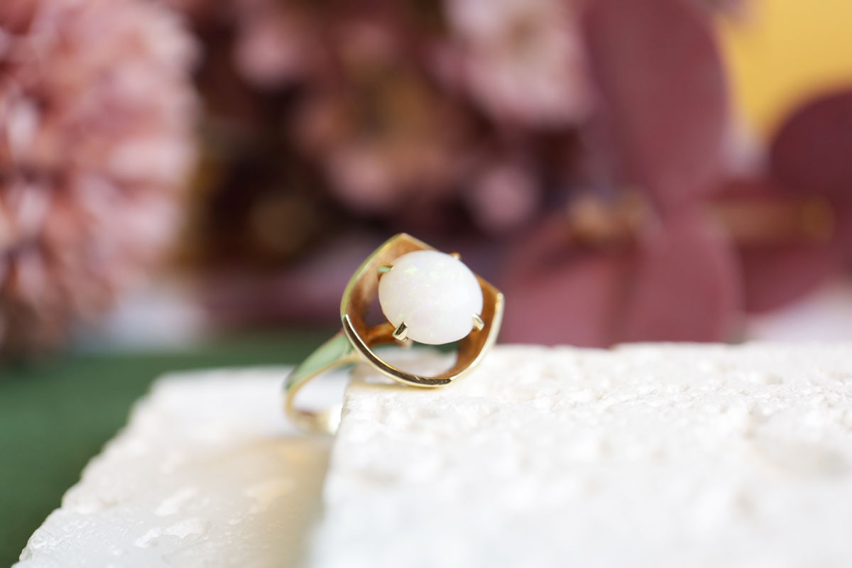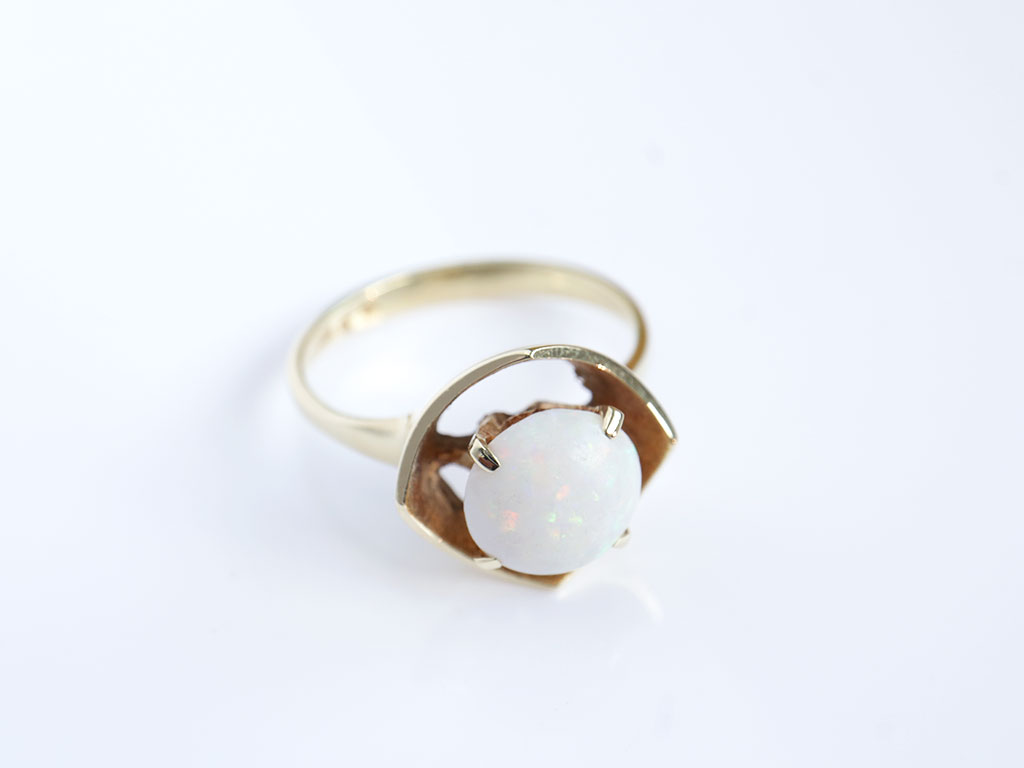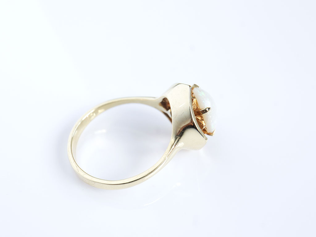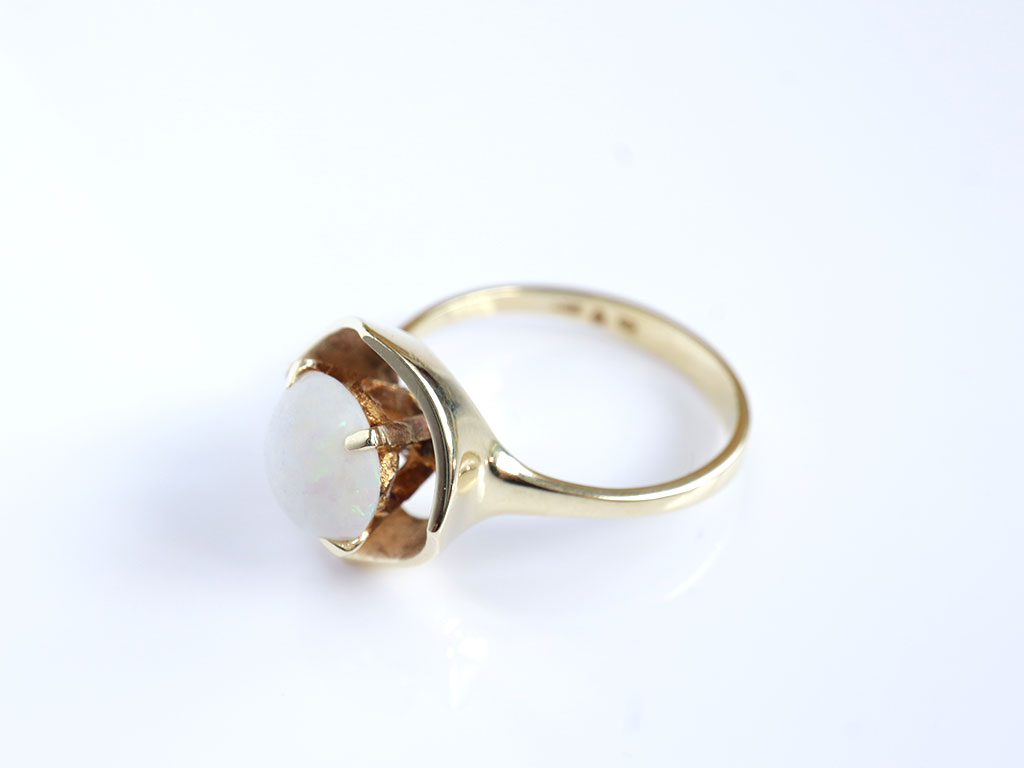 Vintage 14 Karaat Gouden Ring Met Melkopaal