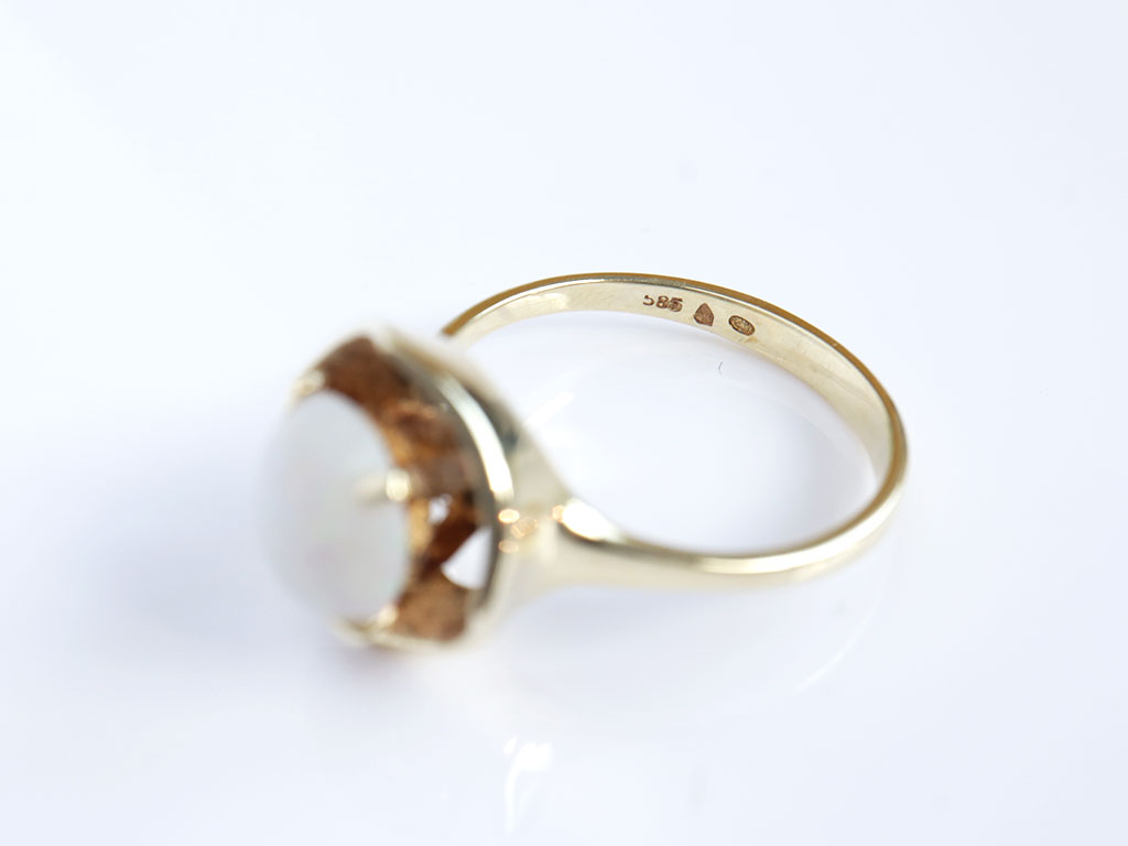 - Vintage 14 Karaat Gouden Ring Met Melkopaal
