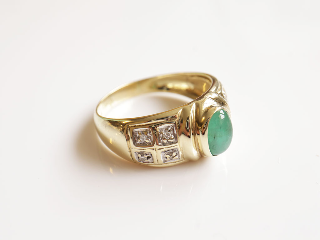 Vintage 14 Karaat Gouden Ring Met Smaragd En Diamanten