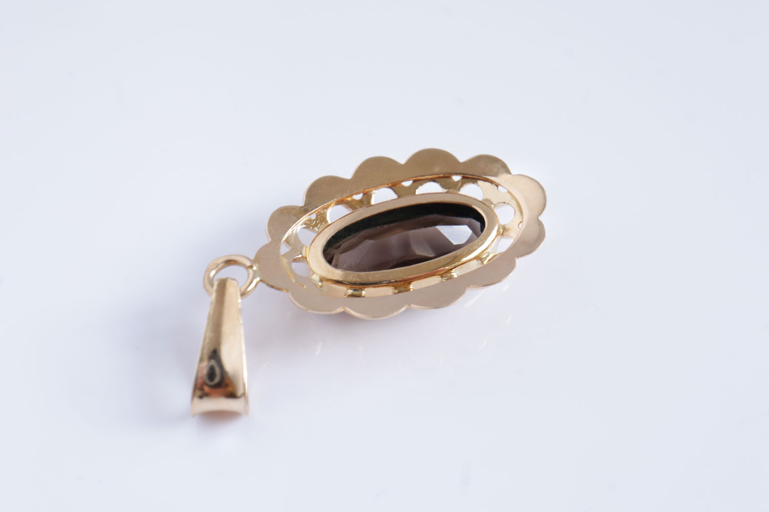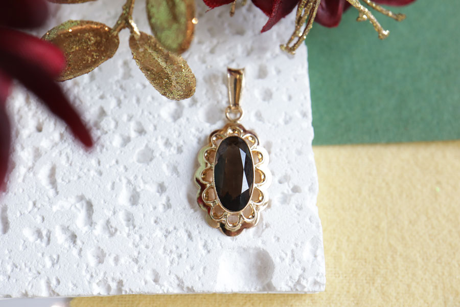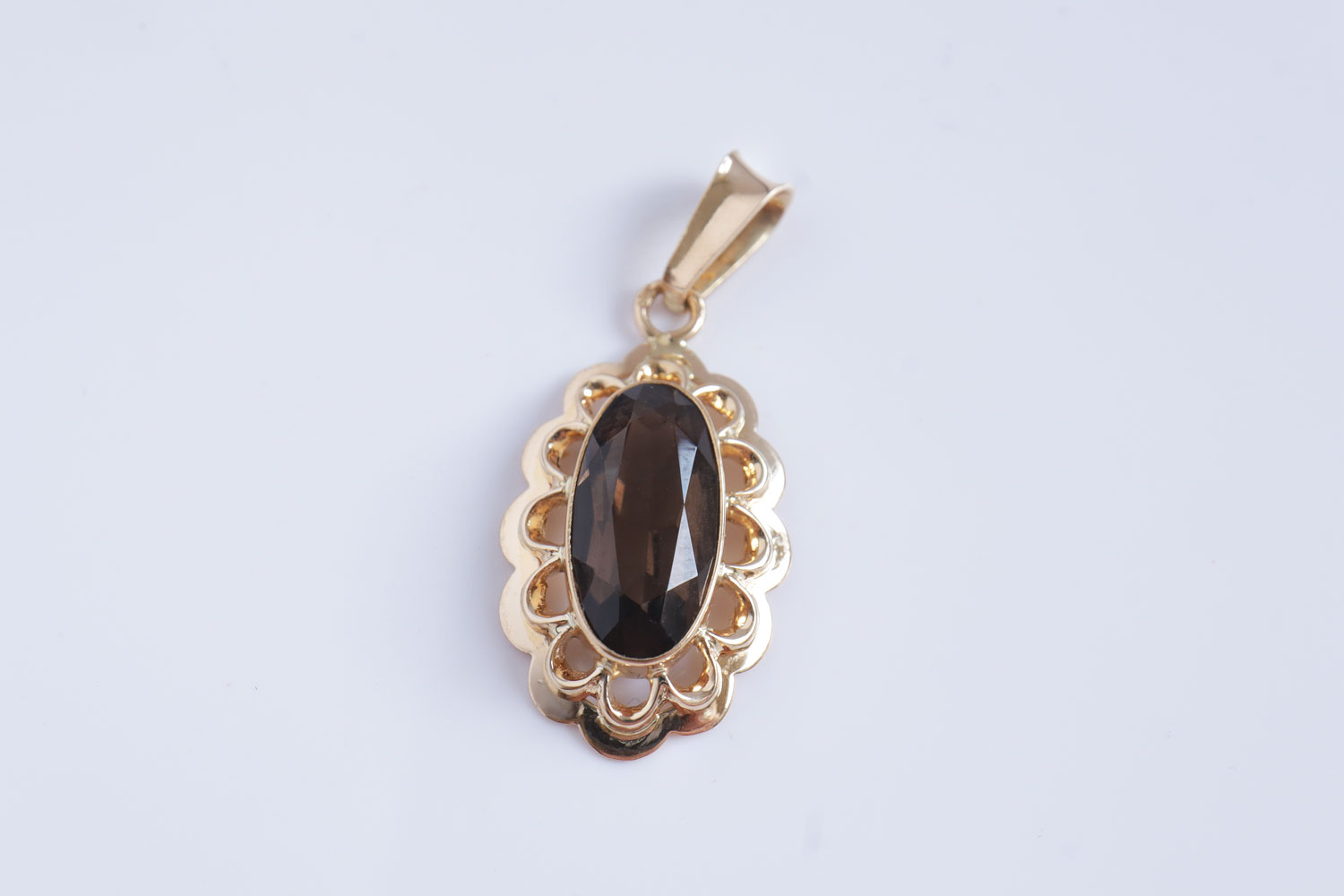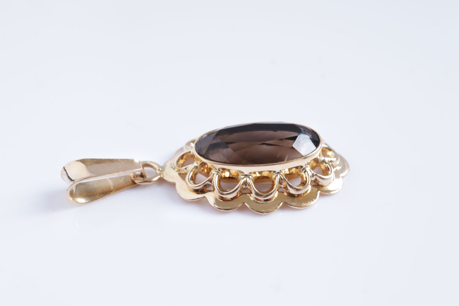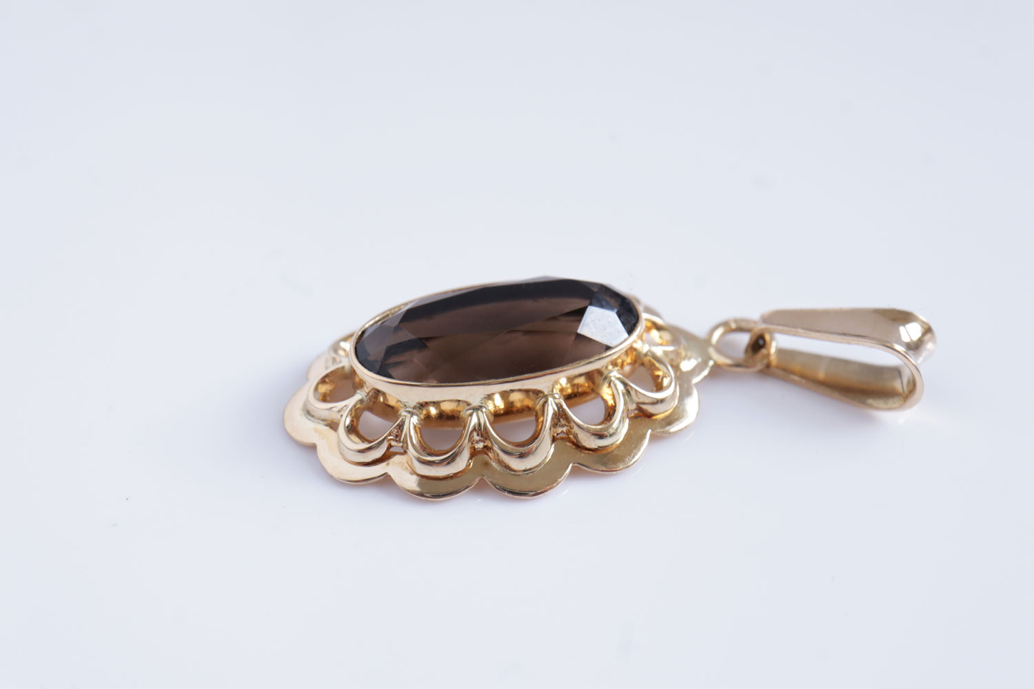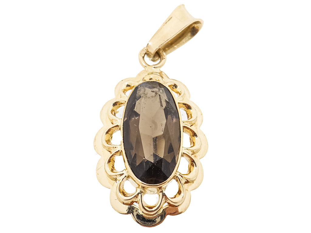 Vintage 14 Karaat Hanger Met Rookkwarts