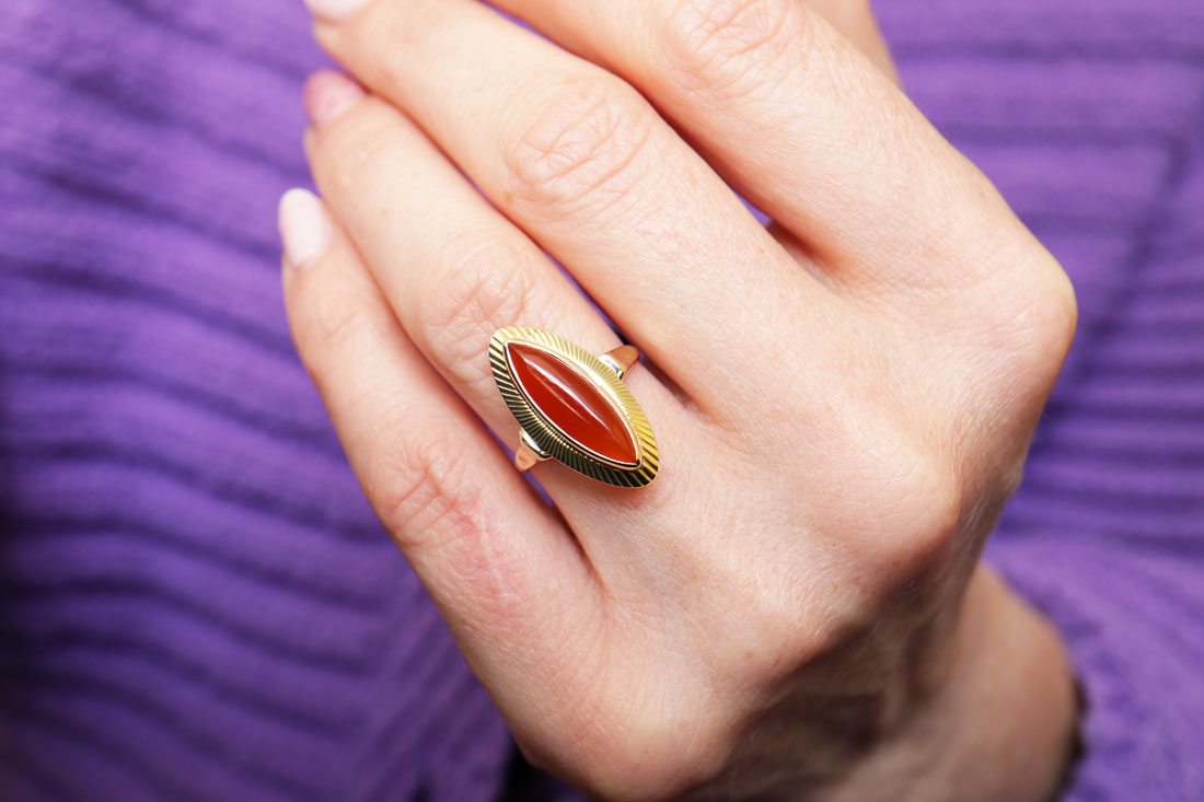 - Vintage Gouden Ring met Carneool