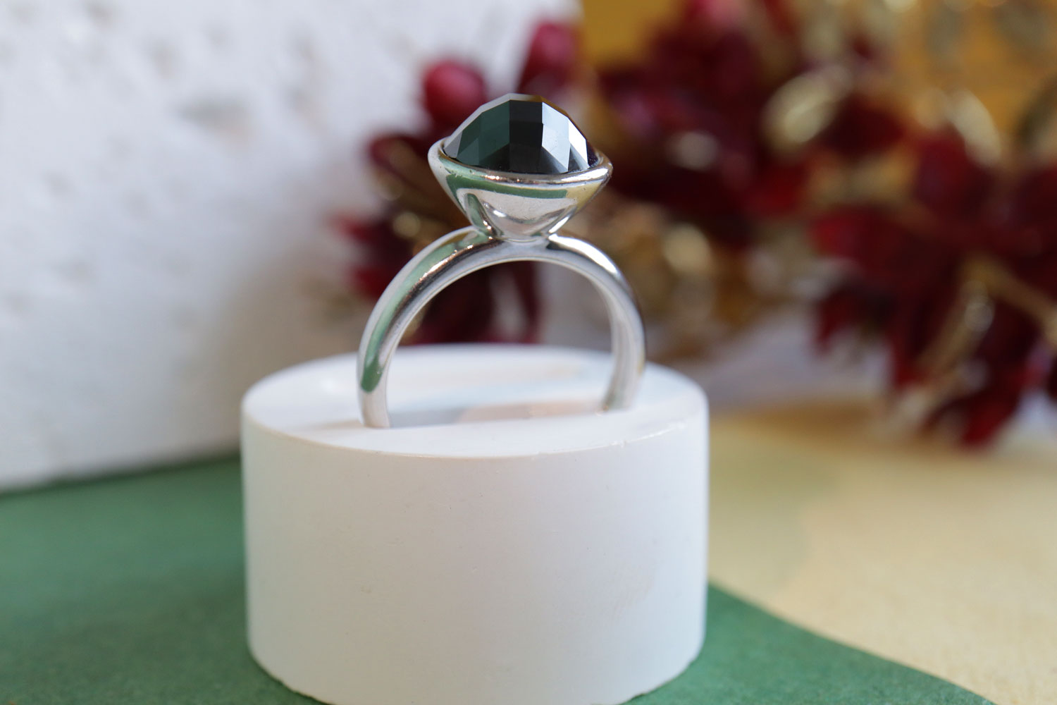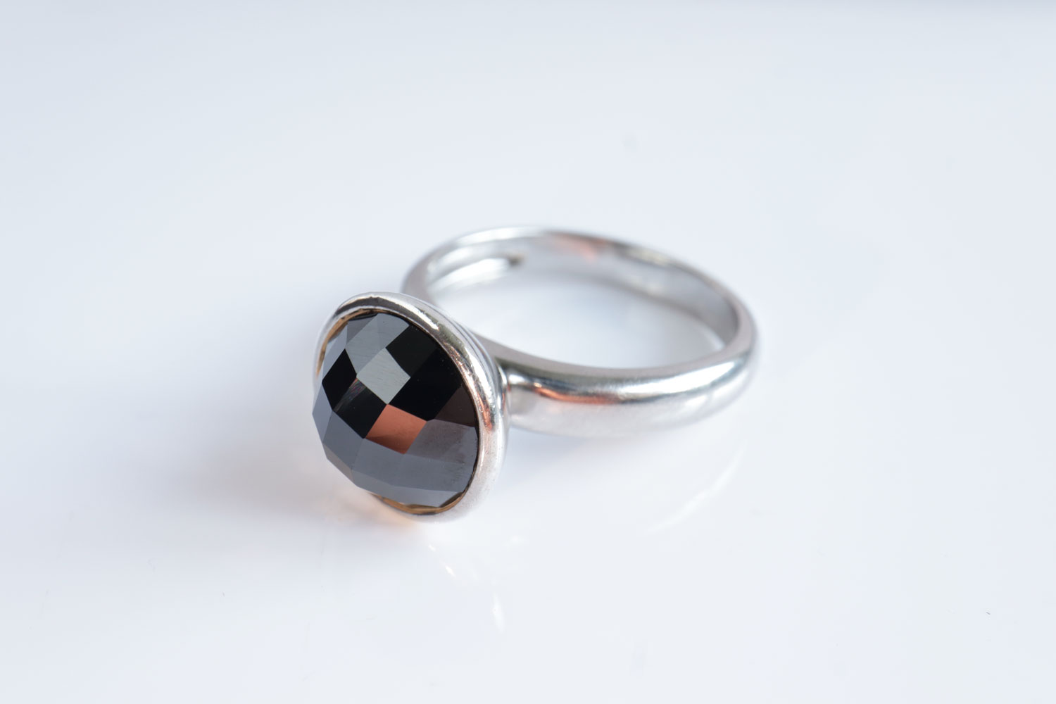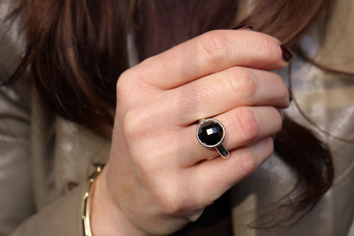 - Zilveren Ring Met Facet Geslepen Zwarte Steen