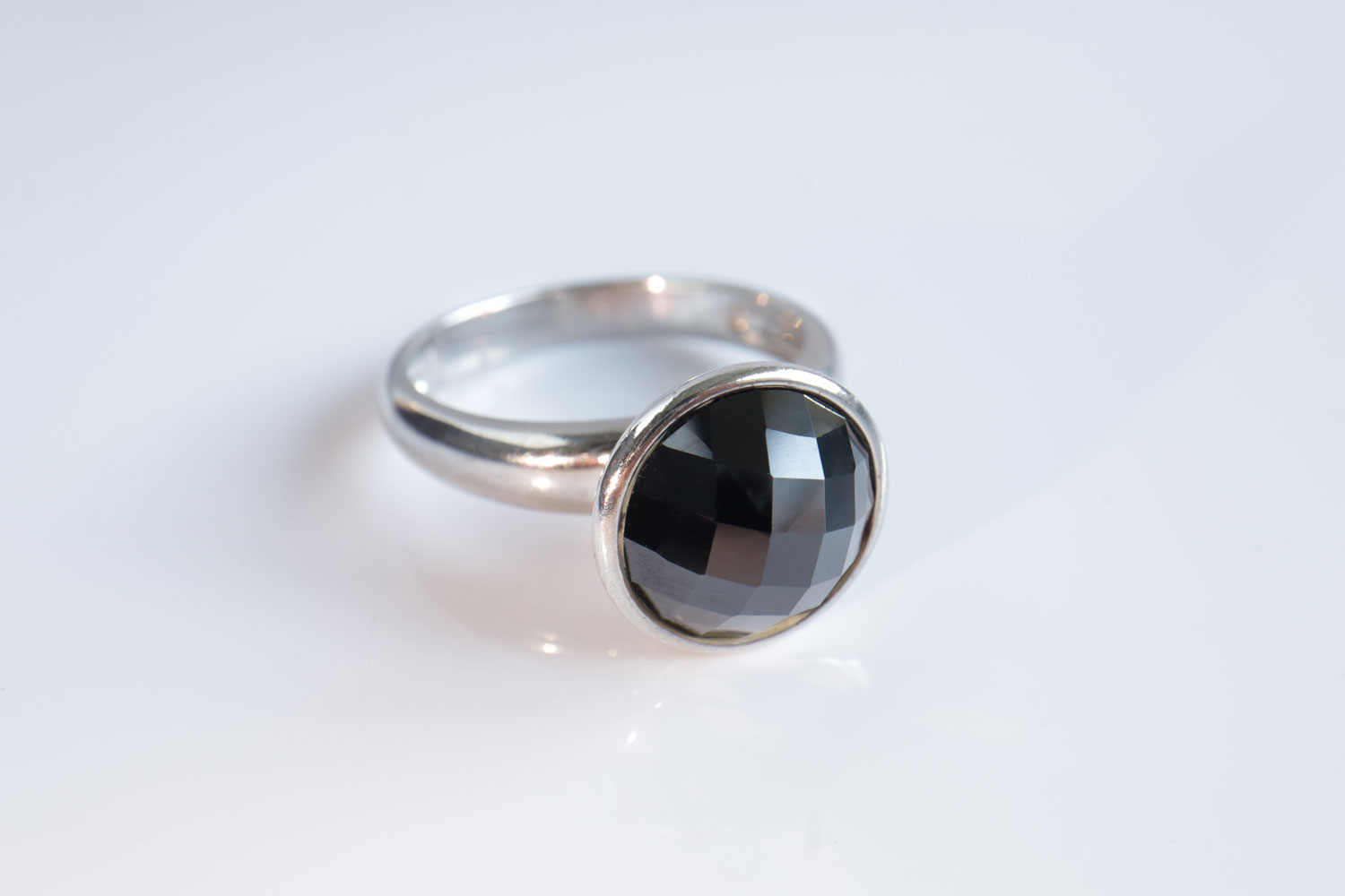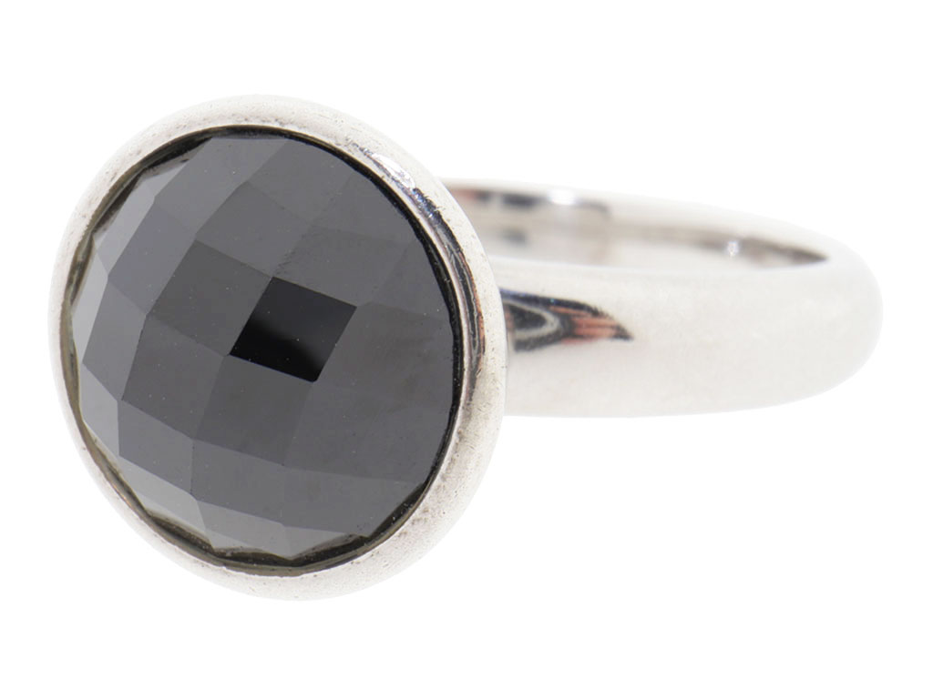 Zilveren Ring Met Facet Geslepen Zwarte Steen